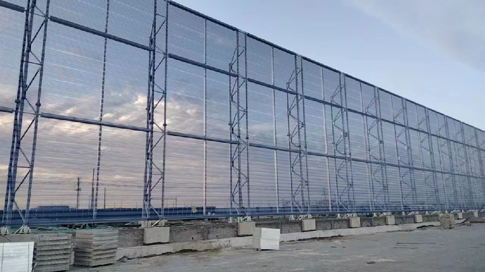 黃驊港防風(fēng)抑塵網(wǎng) 管桁架和抑塵網(wǎng)完工